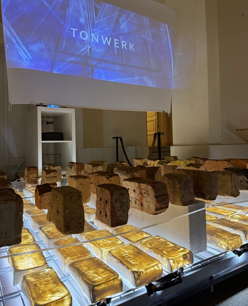 Gleichzeitig werfen ihre aus Porzellan gefertigten beleuchteten Ziegelsteine ein besonderes Licht auf die historischen Originalziegelsteine in der Installation.