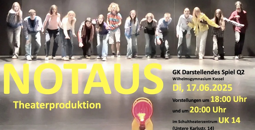 Unsere DSP-Kurse der Jahrgänge 12 und 13 besuchten am 25. August das Wilhelmsgymnasium Kassel. Dank des Kulturbusses konnten wir die Aufführung des DSP-Kurses 12 „Notaus“ erleben – ein eindrucksvolles, bewegendes Stück über die Herausforderungen unserer Zeit.