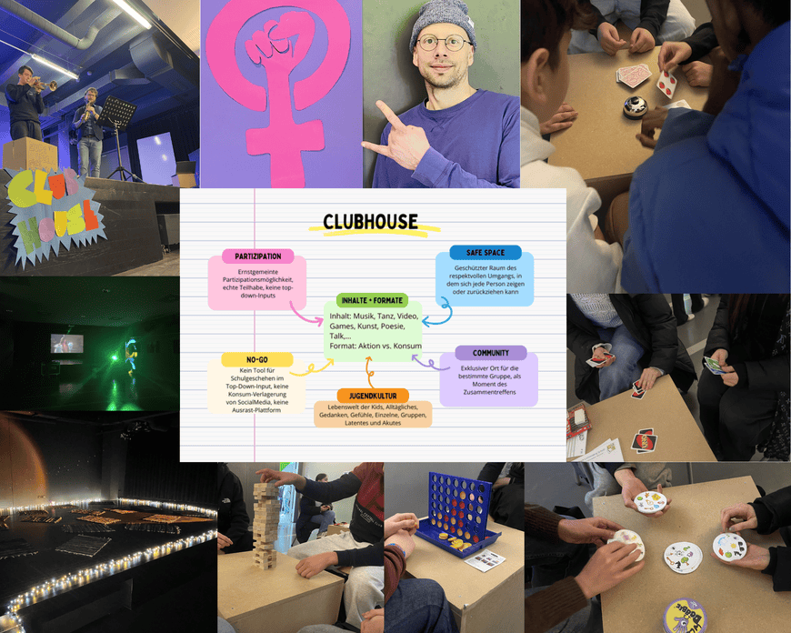 Im zweiten Halbjahr wird es ein bisschen neu: Wir informieren euch über den Schaukasten unterm Vertretungsplan-Screen in der Pausenhalle über upcoming Clubhouse-Inhalte und werden die Pausen für die Jahrgänge unterschiedlich anpassen: Jahrgänge 5, 6, 7 können sich auf noch actionreichere Pausen freuen, weil wir Wettbewerbe, Shows und Aktionen auf der Bühne planen. Für die Jahrgänge 8, 9, 10 wird es nach euren Wünschen eher ruhiger zugehen: Videos, Musik, Diskussionen, kleinere Spiel-Aktionen.