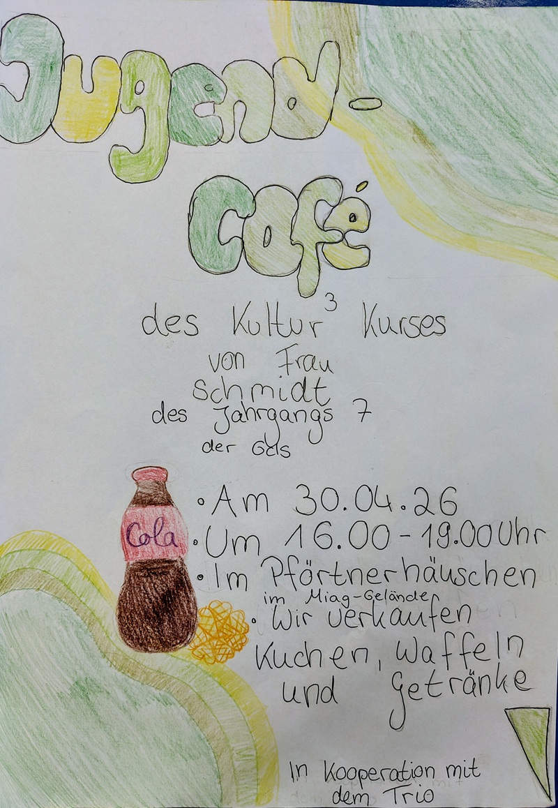 Herzliche Einladung an alle – vor allem Lehrkräfte und Klassen im Jahrgang 7 – zum Besuch unseres einmaligen Pop-Up-Jugendcafés diesen Do, 30.4. von 16-19 Uhr!