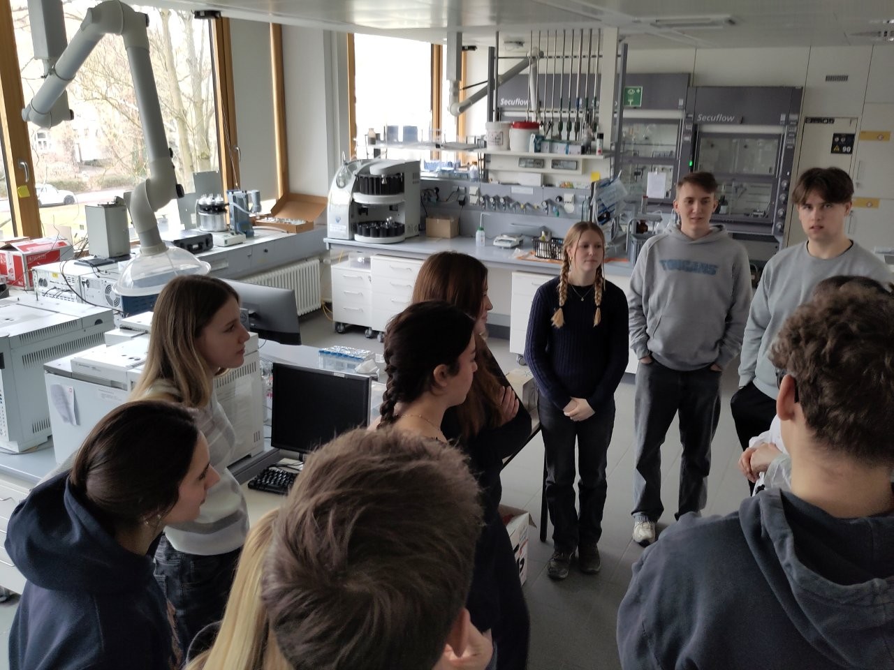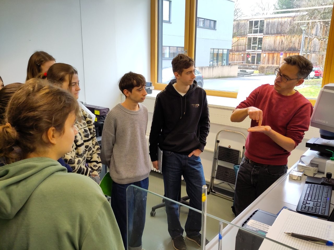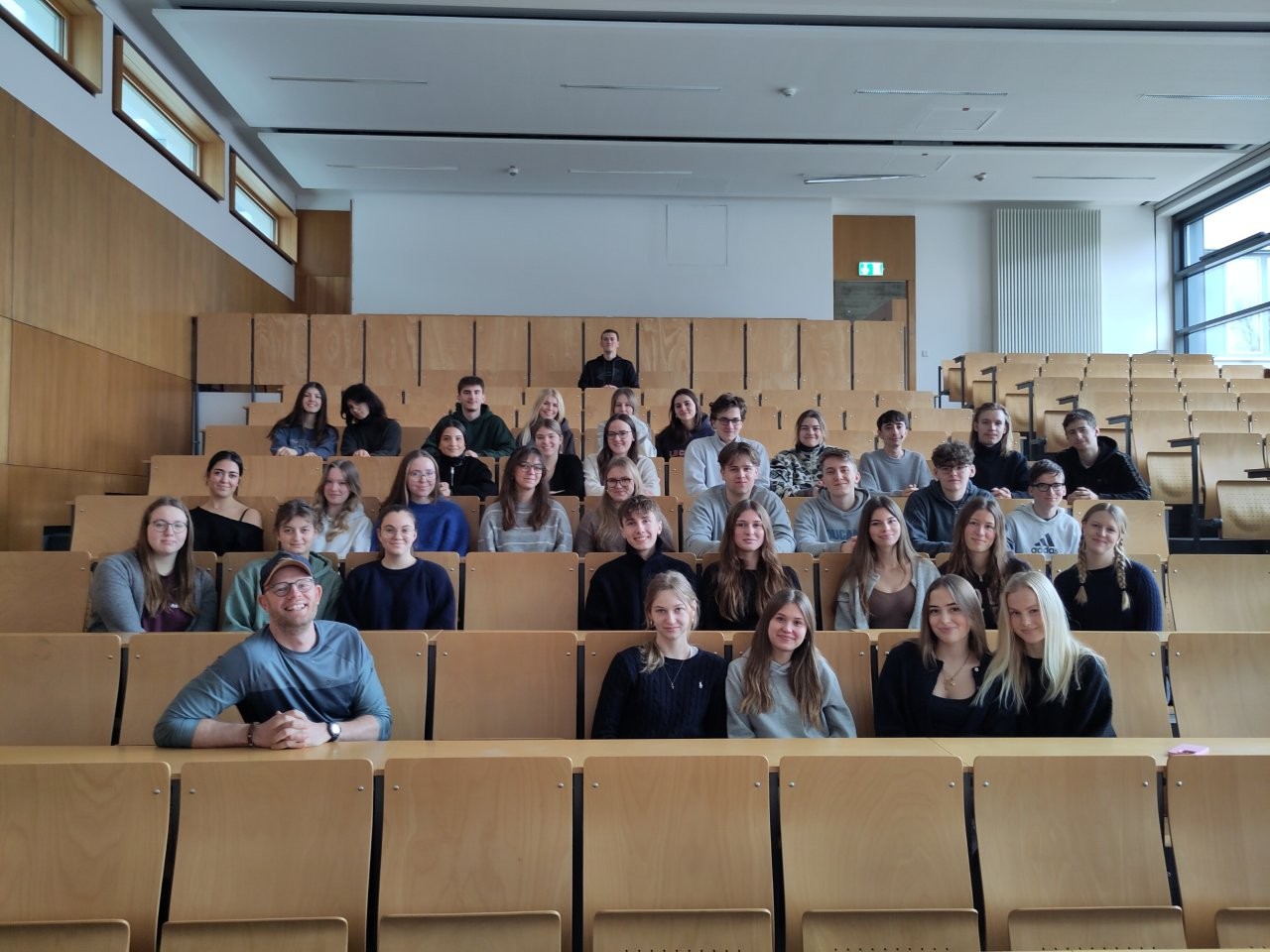 Den Abschluss bildete eine gemeinsame Runde im großen Hörsaal – mit Gruppenfoto und einer besonders wertschätzenden Feedbackrunde. Viele Schülerinnen und Schüler äußerten ihre Begeisterung über die spannenden Einblicke, die offenen Gespräche und die Möglichkeit, aktuelle Forschung hautnah zu erleben. Besonders deutlich wurde dabei ihr echtes Interesse an den großen Zusammenhängen: an der Zukunft unserer Erde, am Umgang mit Ressourcen und an den Herausforderungen des Klimawandels.