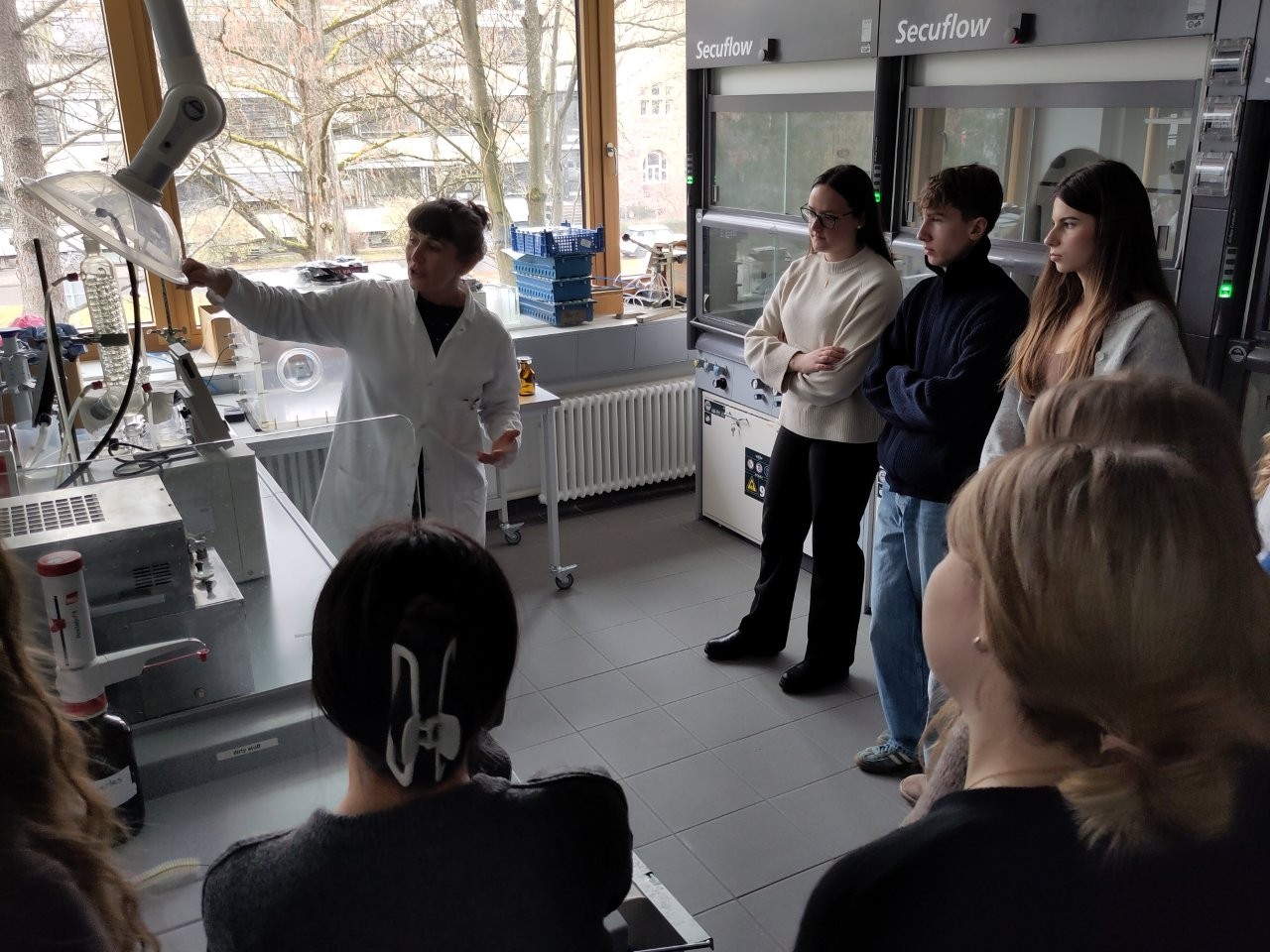 Studienkoordinator Herr Mutzl eröffnete den Tag mit einer anschaulichen Vorstellung der TU Darmstadt und des Instituts. Die Spannweite der Forschung – „von nanoklein bis megagroß, von uralt bis übermorgen“ – faszinierte viele sofort. Ob Hydrogeologie, Geothermie, Ingenieurgeologie, Atmosphärenforschung oder Umweltgeochemie: Die Einblicke in Hightech-Labore, Geländearbeit und vielfältige Berufsfelder zeigten eindrucksvoll, wie breit und gesellschaftlich relevant die Geowissenschaften aufgestellt sind.