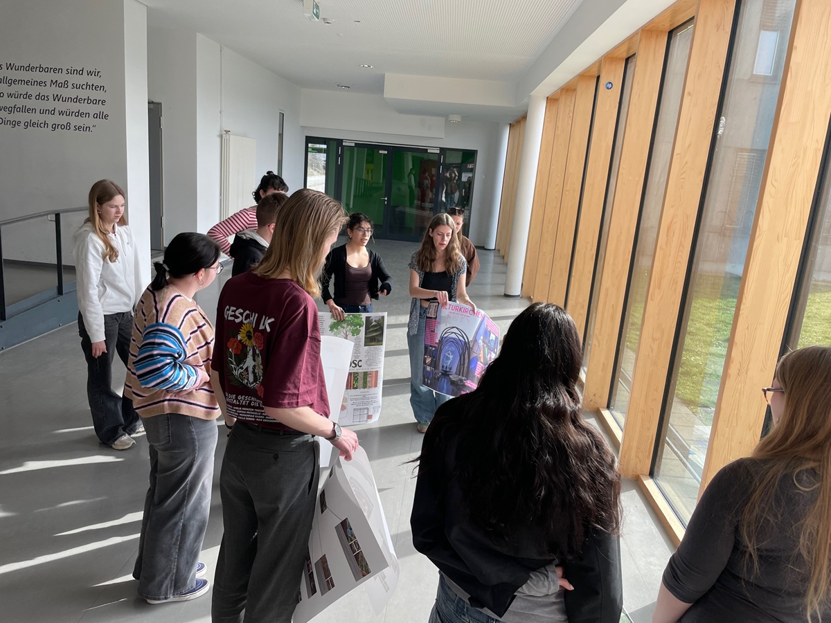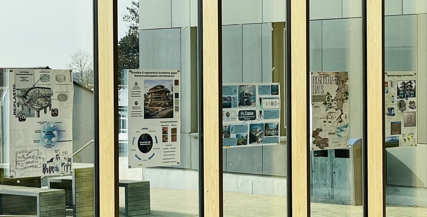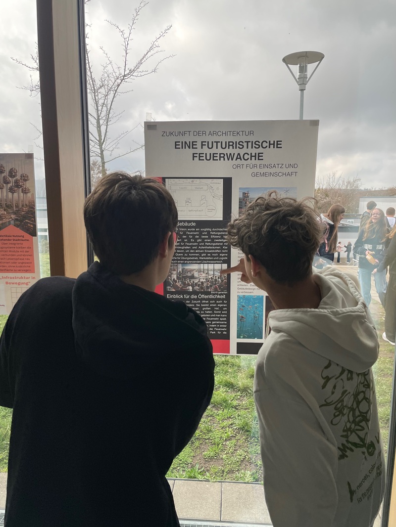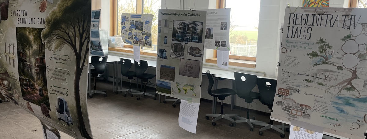 In unserem Projekt, das zuerst am Tag der Offenen Tür präsentiert wurde und dann an der Fensterfront des Hauptgebäudes zu sehen ist, haben wir Ideen für Architektur-Zukunftsvisionen entwickelt. Dabei setzen wir uns mit wichtigen globalen Herausforderungen unserer Zeit auseinander – zum Beispiel Klimawandel, Ressourcenknappheit, soziale Gerechtigkeit, Urbanisierung, Gesundheit und Biodiversität.